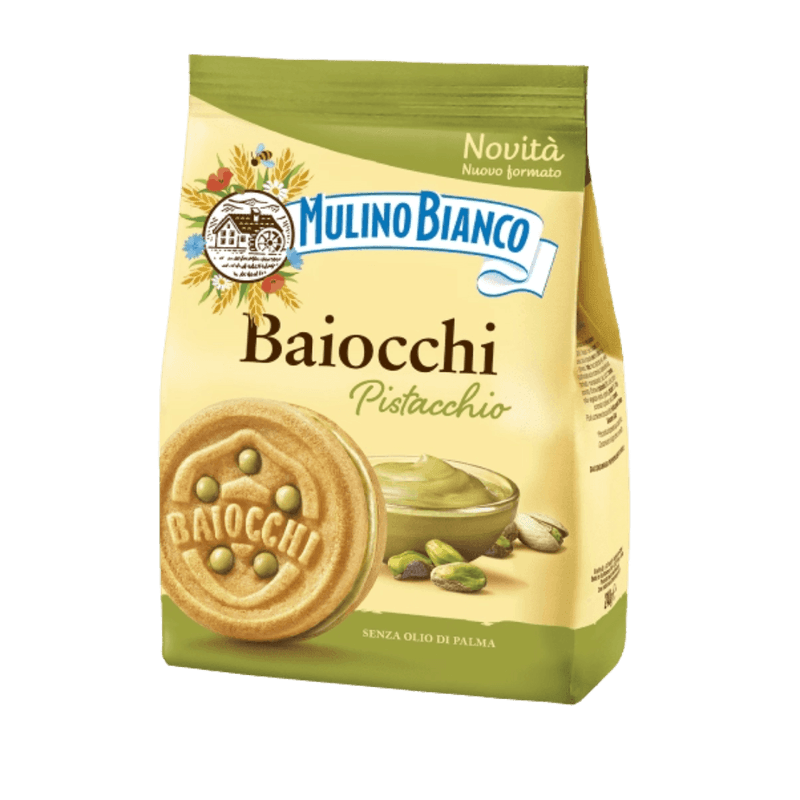 Os Biscoitos Mulino Bianco Baiocchi Pistache são uma verdadeira tentação para os amantes de doces. Cada biscoito apresenta uma crosta dourada e crocante, envolvida por um recheio aveludado de pistache que derrete na boca. Perfeito para acompanhar um café ou um chá, esses biscoitos transformam qualquer momento em uma pausa deliciosa. Seja na hora do lanche ou como sobremesa, os Baiocchi Pistache são uma escolha irresistível que traz um toque de elegância e sabor à sua rotina.