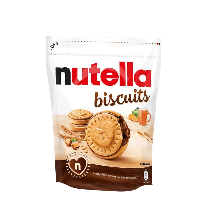 O Biscoito Nutella Biscuit 304g combina a crocância de um biscoito dourado com o recheio cremoso e irresistível de Nutella®, feito com avelãs selecionadas. Cada unidade é delicadamente moldada com o icônico “n” no centro e um coração em relevo, tornando o produto ideal para momentos de indulgência ou para compartilhar. A embalagem contém 304g, com porções práticas para lanches, sobremesas ou acompanhamentos de bebidas quentes.