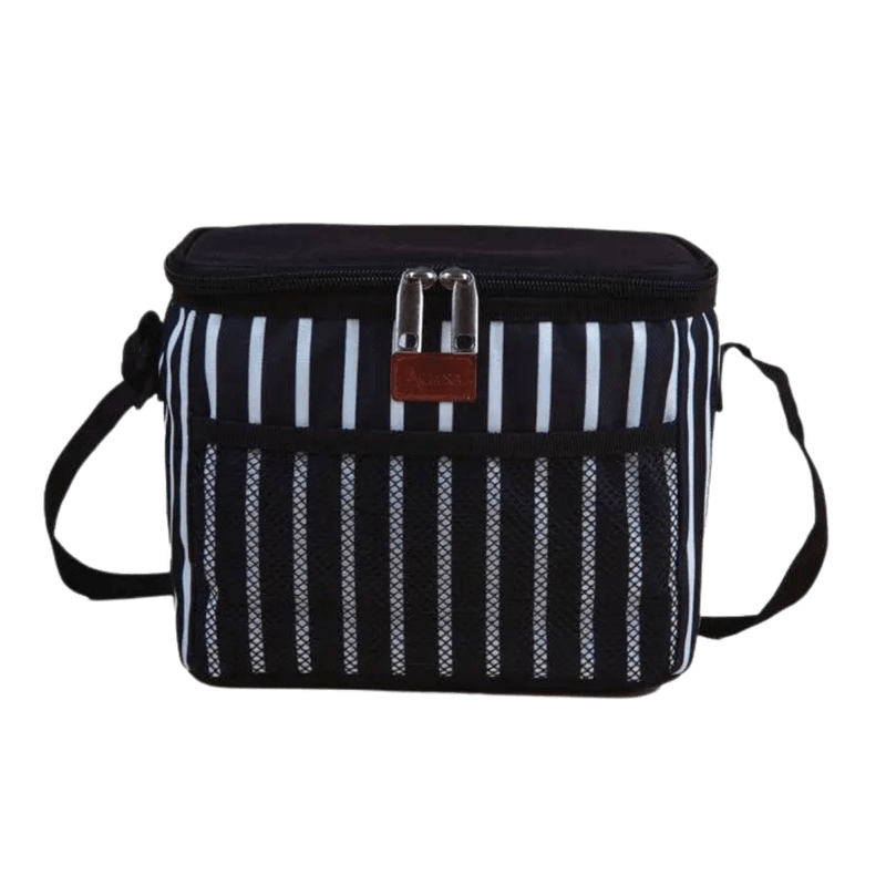 Compacta, elegante e funcional, a Bolsa Térmica A\Casa 5L é perfeita para o dia a dia. Produzida em poliéster de alta resistência, ela oferece isolamento térmico eficiente para conservar a temperatura de alimentos e bebidas por mais tempo. Seu design listrado em preto e branco confere um visual moderno e discreto, ideal para ambientes profissionais ou casuais. Com alça ajustável para ombro, bolso frontal em tela e fechamento com zíper duplo, é ideal para levar marmitas, frutas, latinhas ou snacks em trajetos curtos, como trabalho, escola ou academia.