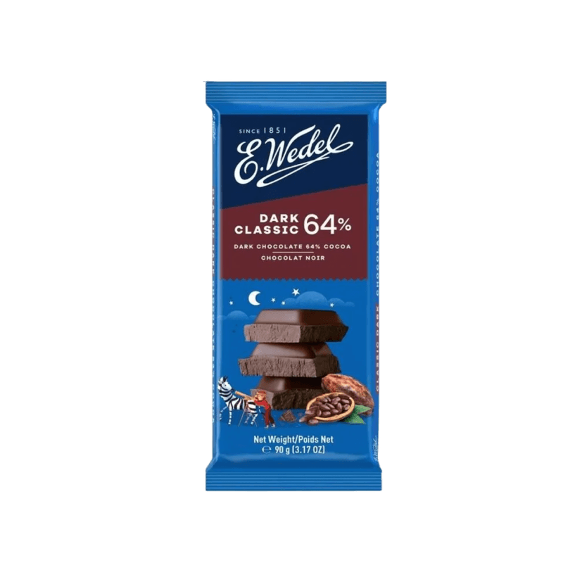 O Chocolate E. Wedel Amargo 64% é uma escolha refinada para quem aprecia o sabor intenso do cacau. Produzido pela tradicional marca polonesa E. Wedel, desde 1851, este tablete contém 64% de cacau, oferecendo uma experiência equilibrada entre amargor e suavidade. Com textura cremosa e aroma marcante, é ideal para consumo direto, harmonizações ou uso em receitas gourmet. A embalagem de 90g traz um visual moderno e vibrante, refletindo a qualidade e a tradição da marca.
