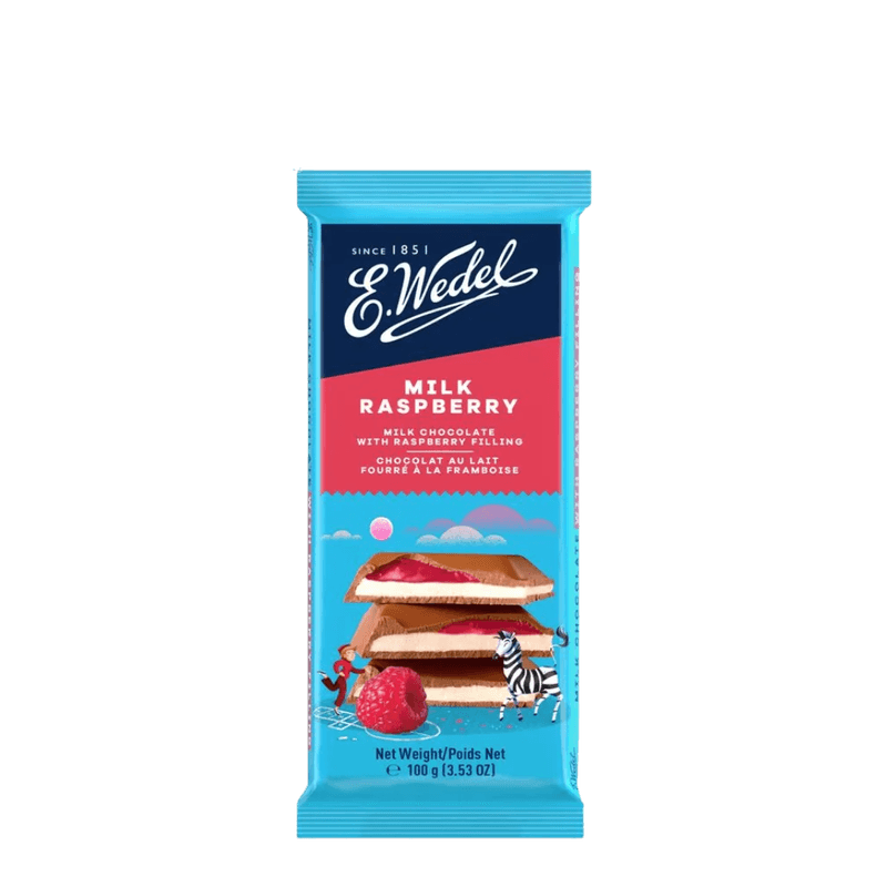 O Chocolate E.Wedel Leite Framboesa 100g combina o sabor suave do chocolate ao leite polonês com um recheio cremoso e aromático de framboesa, criando uma experiência doce e frutada irresistível. Com tradição desde 1851, a marca E.Wedel é sinônimo de qualidade e inovação na confeitaria europeia. A embalagem vibrante e divertida complementa o produto, tornando-o ideal para lanches, presentes ou momentos de indulgência.