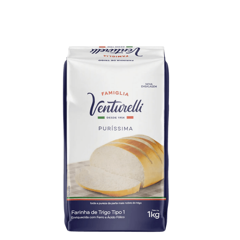 A Farinha de Trigo Venturelli Puríssima é um produto de alta qualidade, elaborado a partir da parte mais nobre do grão do trigo. Com uma coloração “branquíssima” e enriquecida com Ferro e Ácido Fólico, essa farinha é ideal para diversas preparações, como pães, massas, bolos e tortas. Seu processo de moagem especial garante leveza e sabor, tornando-a perfeita tanto para uso doméstico quanto para chefs de cozinha.