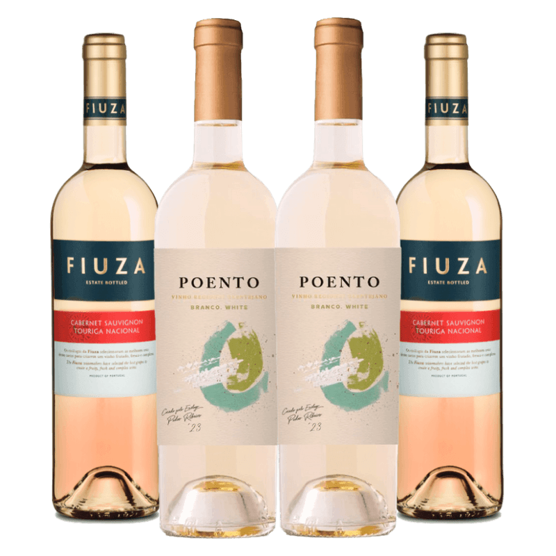 O Kit Carnaval em Pernambuco reúne dois vinhos portugueses perfeitos para o verão: o branco Poento Vinho Regional Lisboeta e o rosé Fiuza Cabernet Sauvignon & Touriga Nacional. São 4 garrafas de 750ml, sendo 2 unidades de cada rótulo, ideais para quem busca frescor, versatilidade e sabor em momentos descontraídos.