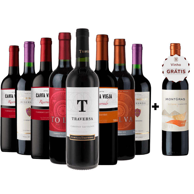 Kit 8 Vinhos Tintos + 1 Carménère Chileno Grátis