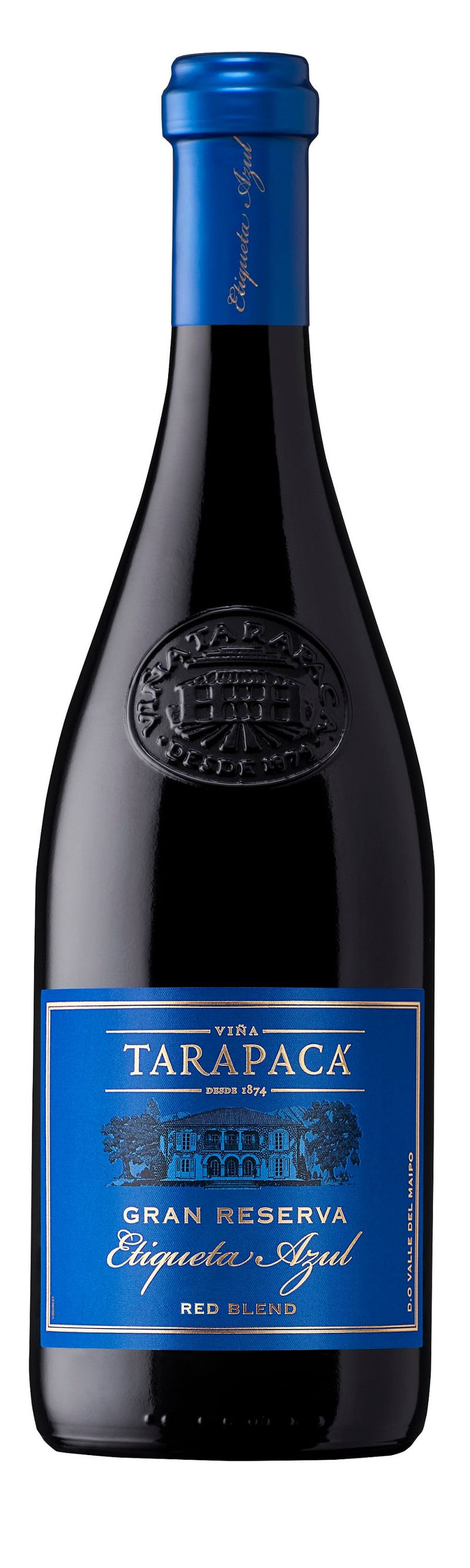 O vinho Tarapacá Gran Reserva Etiqueta Azul é elaborado a partir dos melhores lotes do Vale do Maipo, Chile.O líquido é elaborado a partir do blend de cabernet sauvignon, syrah e cabernet franc, e passa 16 meses em barricas de carvalho, conferindo assim o nome de Gran Reserva. No visual, apresenta coloração rubi, com aromas de frutas pretas sobremaduras, além de violetas. No paladar taninos envolventes e boa acidez.